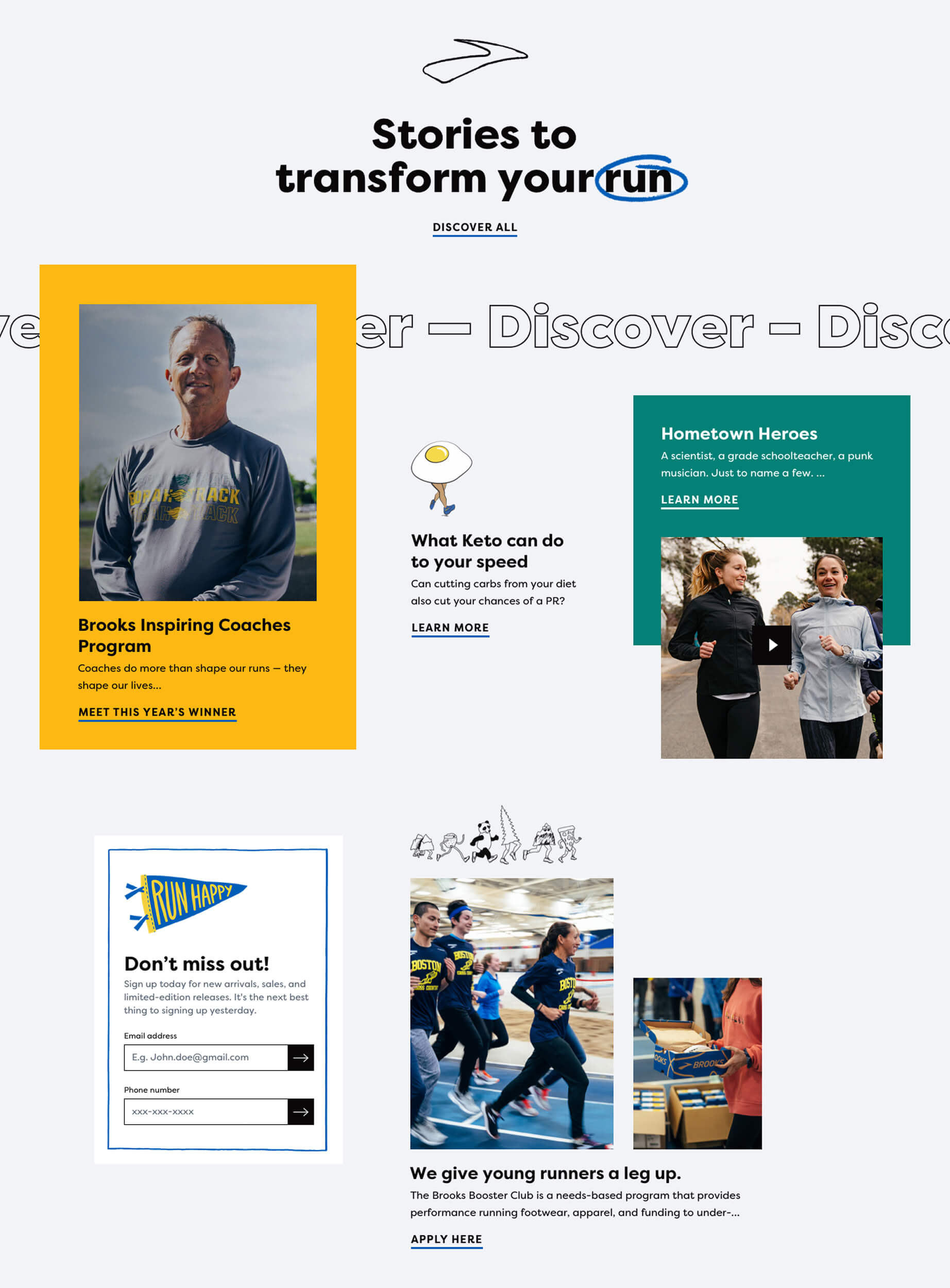 Brooks Running has been transformed into your personal running partner, expanding the e-commerce experience to be more than just a shopping tool. We injected personality into the new digital experience, distinguishing it from the generic "big sweat" competitors.