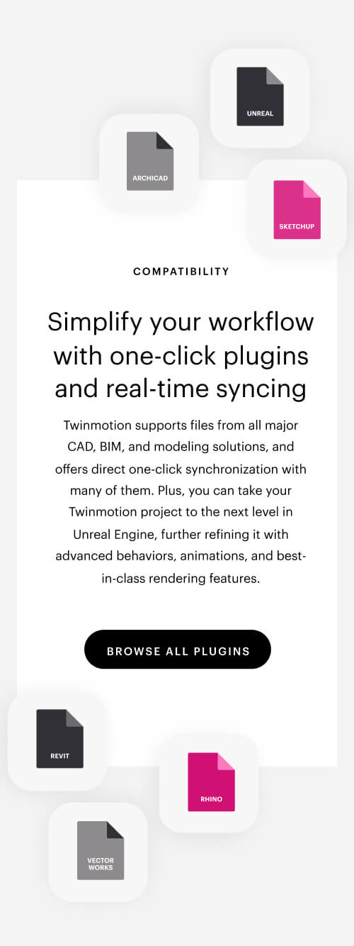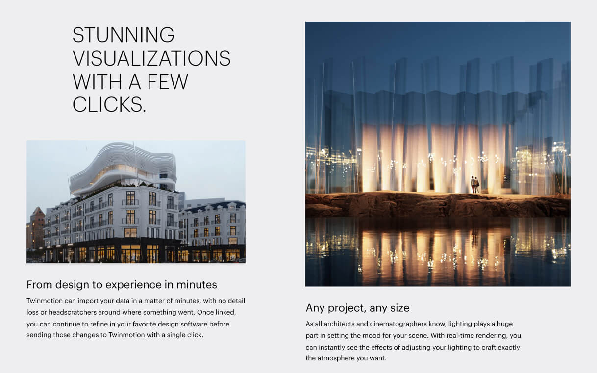 Originally developed for architecture, Twinmotion has expanded its 3D visualization capabilities to serve multiple industries. We have created a new home and brand for Twinmotion following its acquisition by Epic Games.