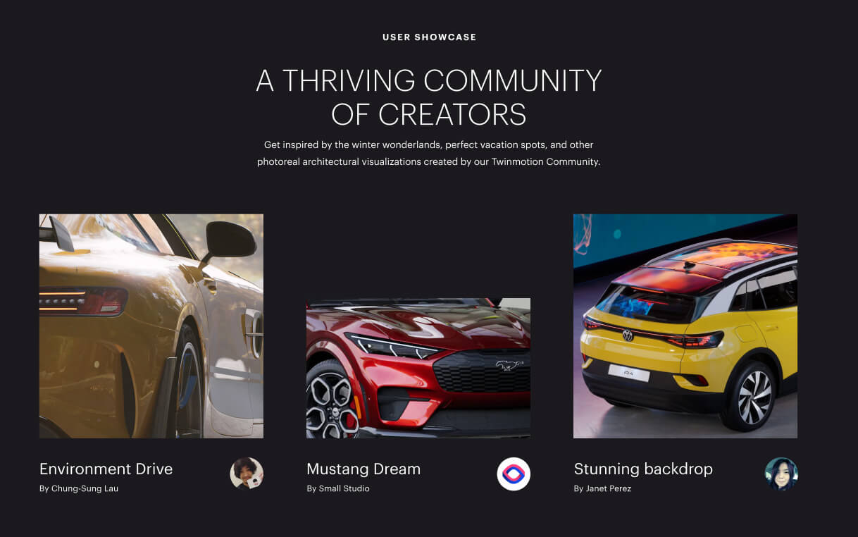 Switching to a new tool can be overwhelming, so we showcased entire projects done in Twinmotion—from start to final exports. This helps creators see the full process, showing how Twinmotion can seamlessly integrate into their workflow and make it more efficient.